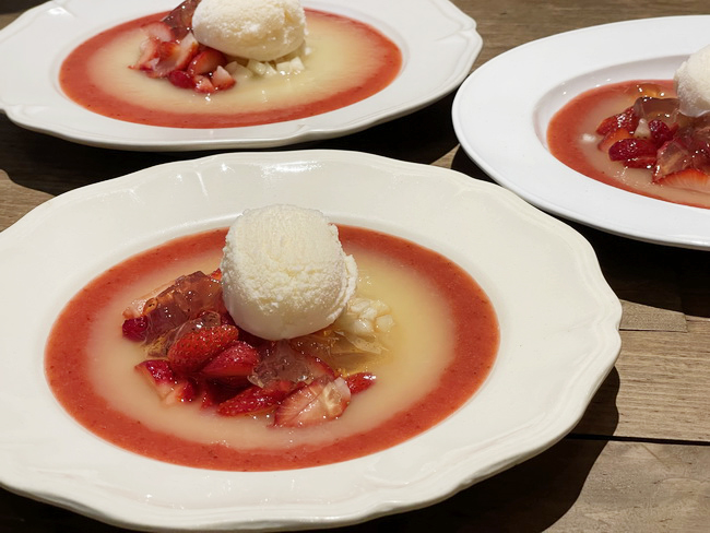 這應該是第四趟了吧,從第一趟的芒果季、第二趟的秋栗,第三趟的草莓,都是感恩我的偶像帶著我,每次我都要強調,我不是愛吃甜點的人,就是時常在這裡可以讓我梭哈,每一種一定要來一輪才甘願(大笑)。這回是草莓季,非常的好吃!